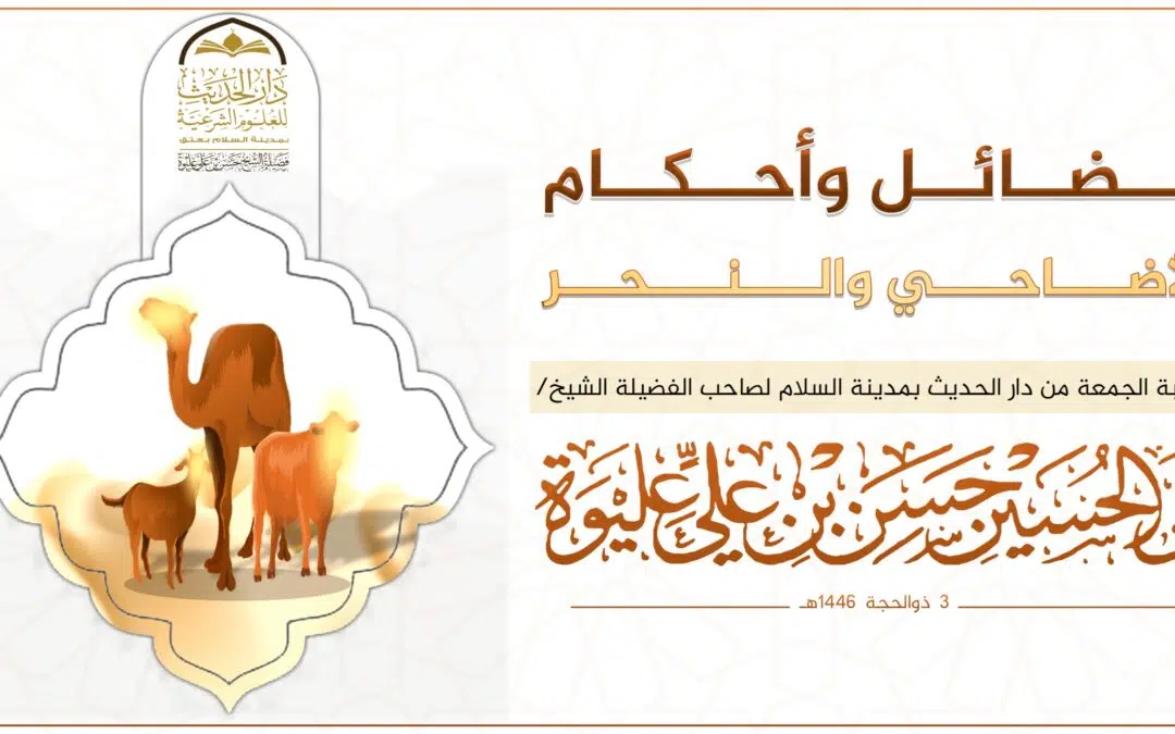 فضائل وأحكام الأضاحي والنحر الجمعة ۳ ذو الحجة ۱٤٤٦ هـ الموافق ۳۰ مايو ۲۰۲۵ مـ | الخطب | شارك بتعليقك فضائل وأحكام الأضاحي والنحر لفضيلة الشيخ/حسن بن علي عليوة القائم على دار الحديث بمدينة السلام PlayStop نافذة X مرتبط فضائل العشر من ذي الحجة خطبة عيد الأضحى المبارك لعام 1446هـ اترك ردإلغاء الرد